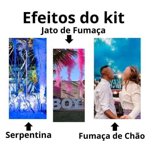 Kit 1 Chá Revelação 1 Fumaça + 1 Serpentina + Pó C/ Acionador